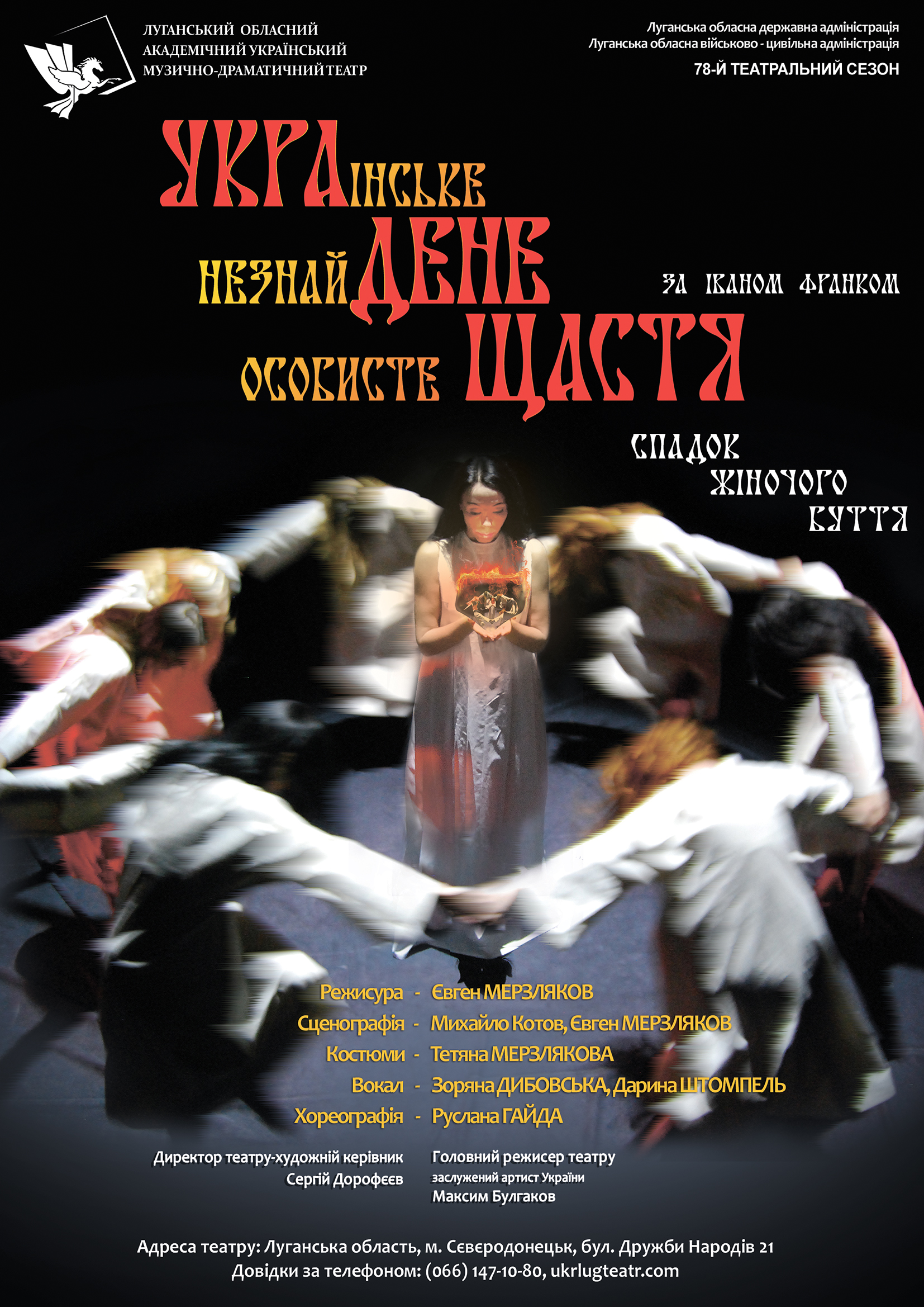 Луганський обласний академічний український музично-драматичний театр запрошує на виставу за Іваном Франком «Украдене щастя»,спадок жіночого буття на 1 дію.