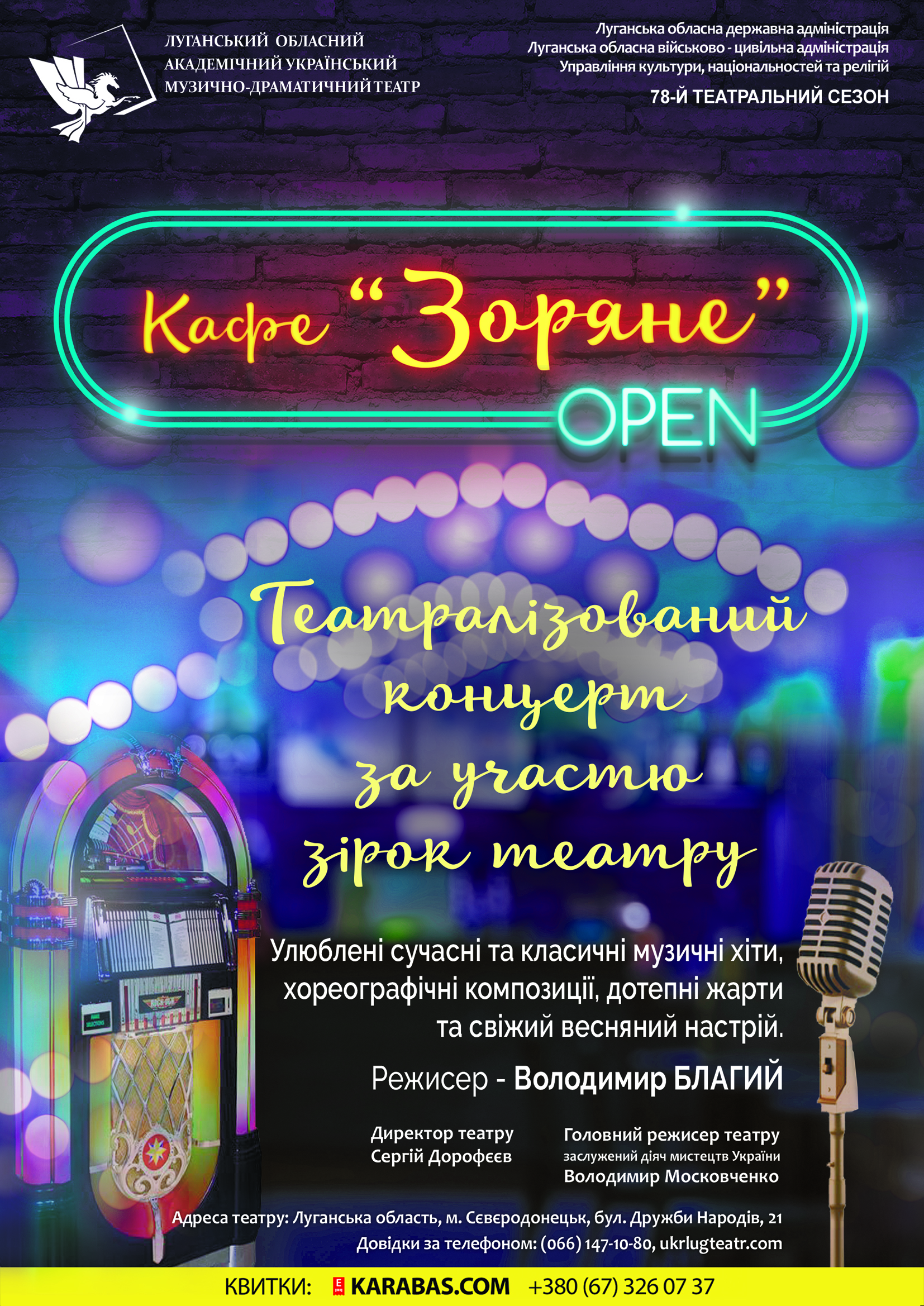 Луганський обласний академічний український музично-драматичний театр запрошує на театралізований концерт " Кафе «Зоряне» open".