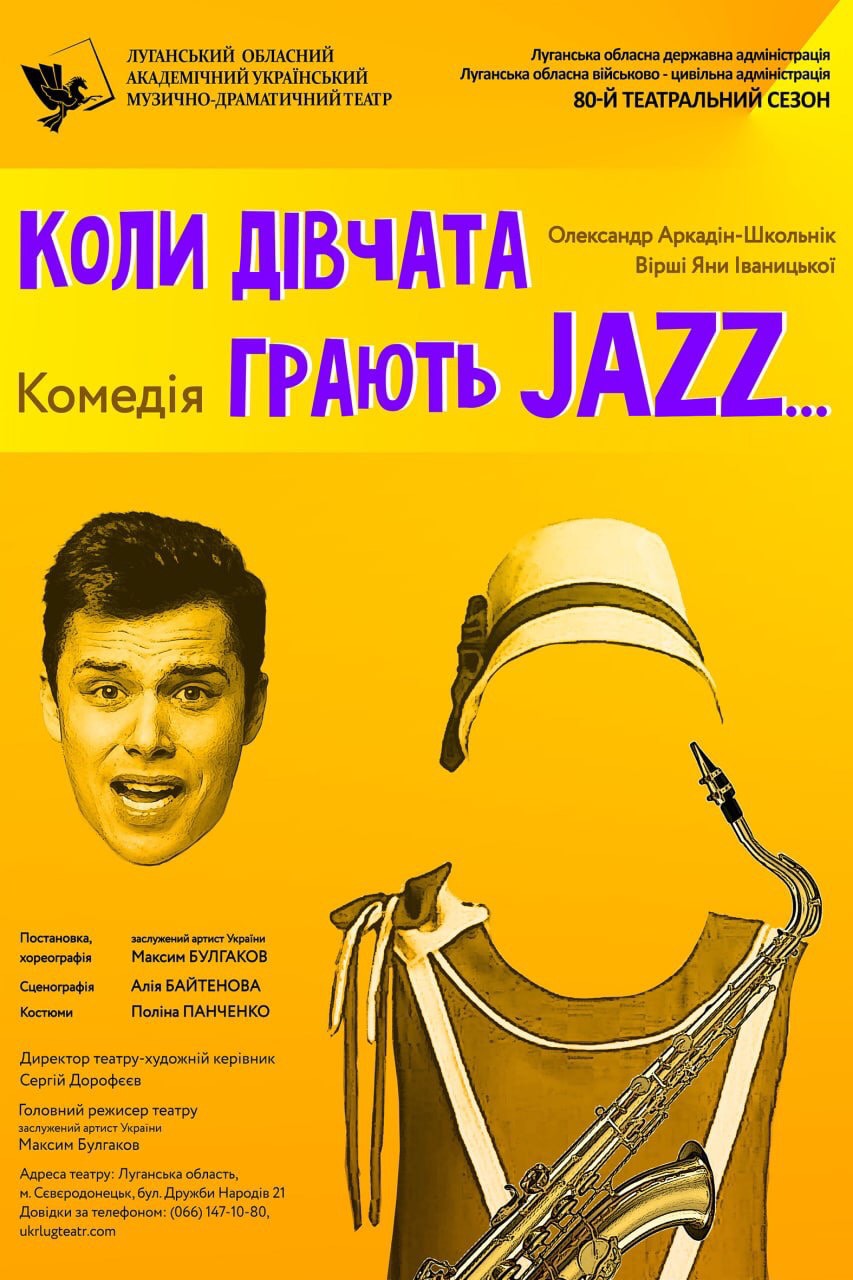 Луганський обласний академічний український музично-драматичний театр запрошує на прем’єру вистави "Коли дівчата грають JAZZ...” . Олександр Аркадін-Школьнік, вірші Яни Іваницької комедія на 2 дії.