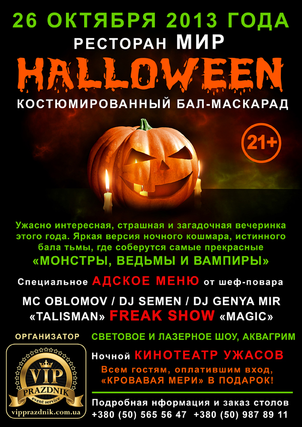 МЕГА вечеринка, костюмированный бал-маскарад, посвящённый празднику HALLOWEEN.