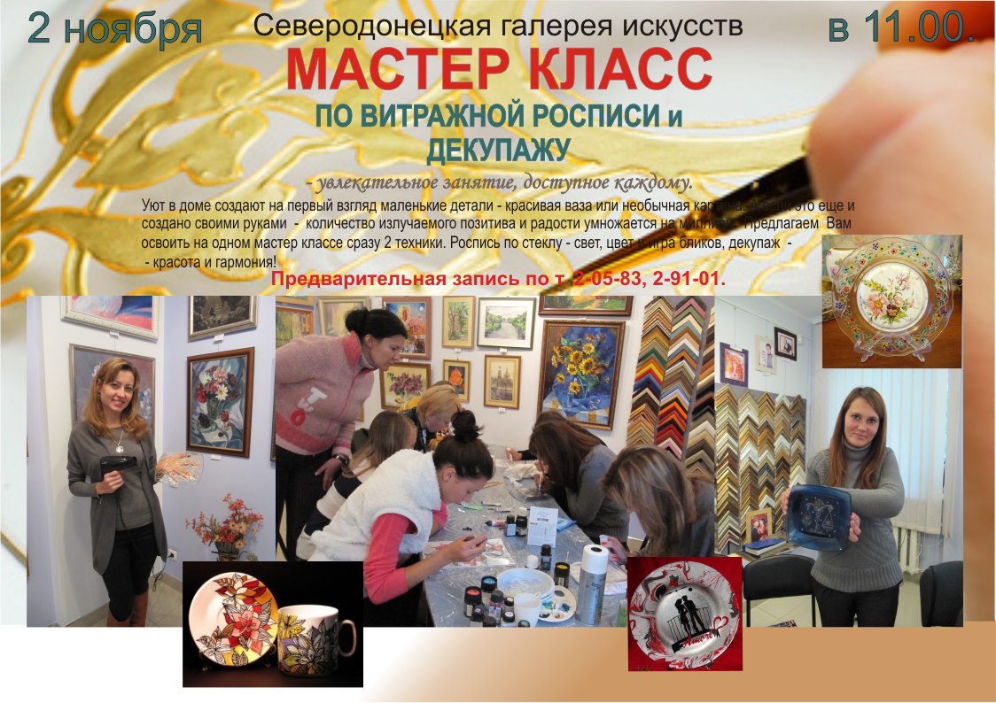 Предлагаем Вам освоить на одном мастер классе сразу две техники: роспись по стеклу - свет, цвет и игра бликов, декупаж - красота и гармония!