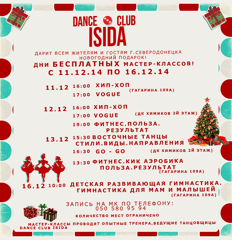 Дни БЕСПЛАТНЫХ мастер классов с 11.12 по 16.12.2014г.!