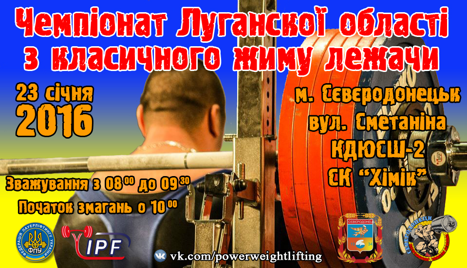 Чемпіонат Луганської області з класичного жиму лежачи серед юнаків та дівчат, юніорів та юніорок, чоловіків та жінок, ветеранів.