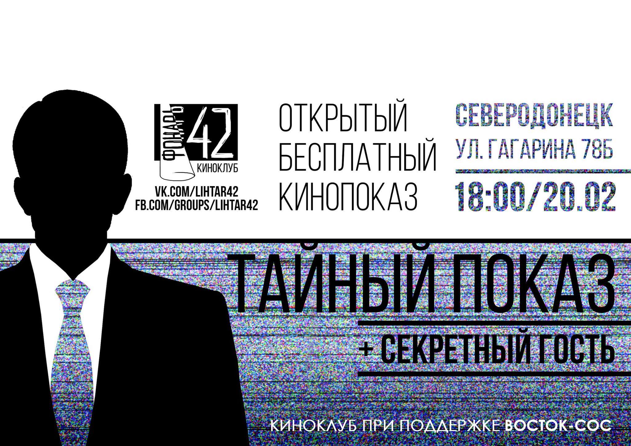 В эту субботу мы приглашаем тебя (да-да, именно тебя) вступить в наше тайное братство кинолюбов и киноманов “Фонарь 42”. Даже название фильма скрыто под сплошным покровом тайны, но обещаем, что тебя ожидает только неординарное, а главное – актуальное и даже очень злободневное кино.