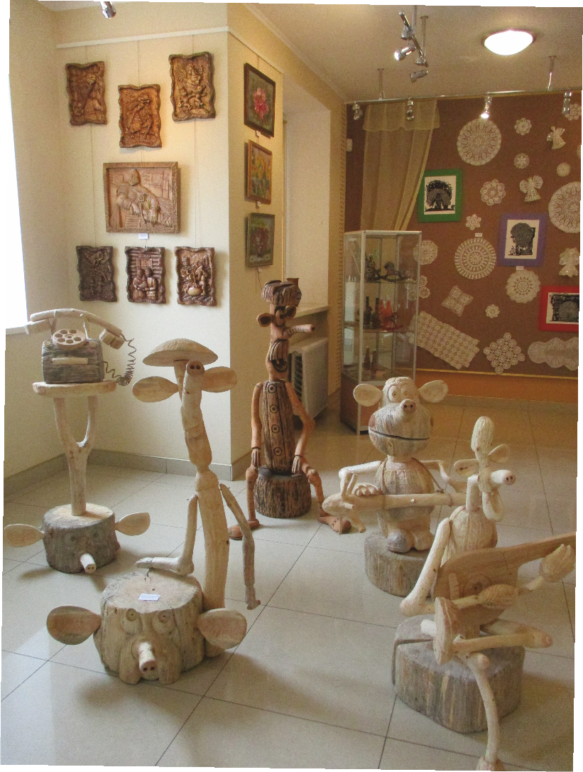 По 12 березня у Галереї мистецтв - "Галявина казок" - виставка авторських робіт члена Національної Спілки народних майстрів України Леоніда Терещенко та народного майстра Луганщини із Кремінної Олександра Башуна (різблення по дереву)