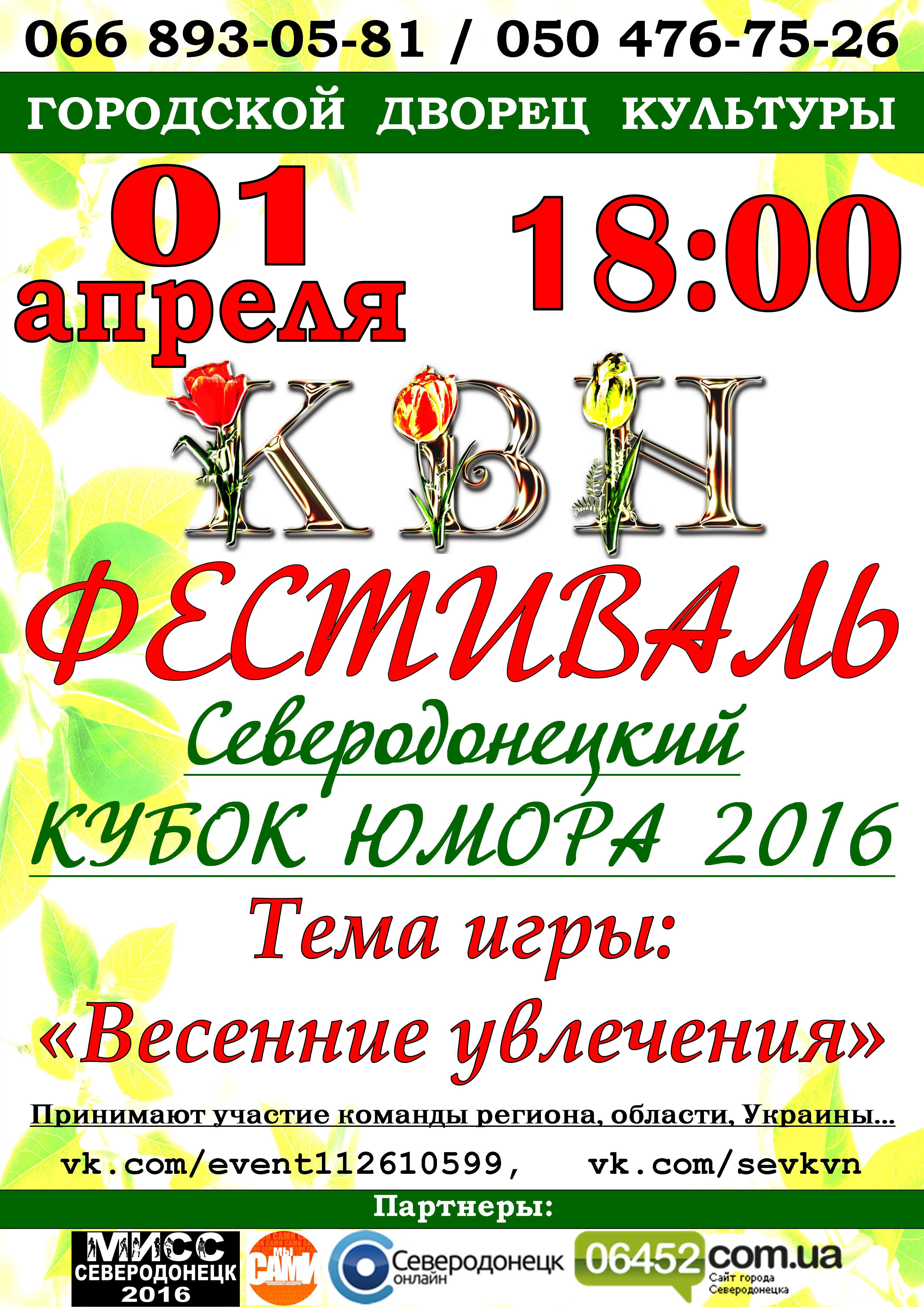 Традиционно Международный день смеха КВНщики отмечают на Фестивале КВН в Городском Дворце Культуры и борются за Северодонецкий Кубок Юмора!!!!