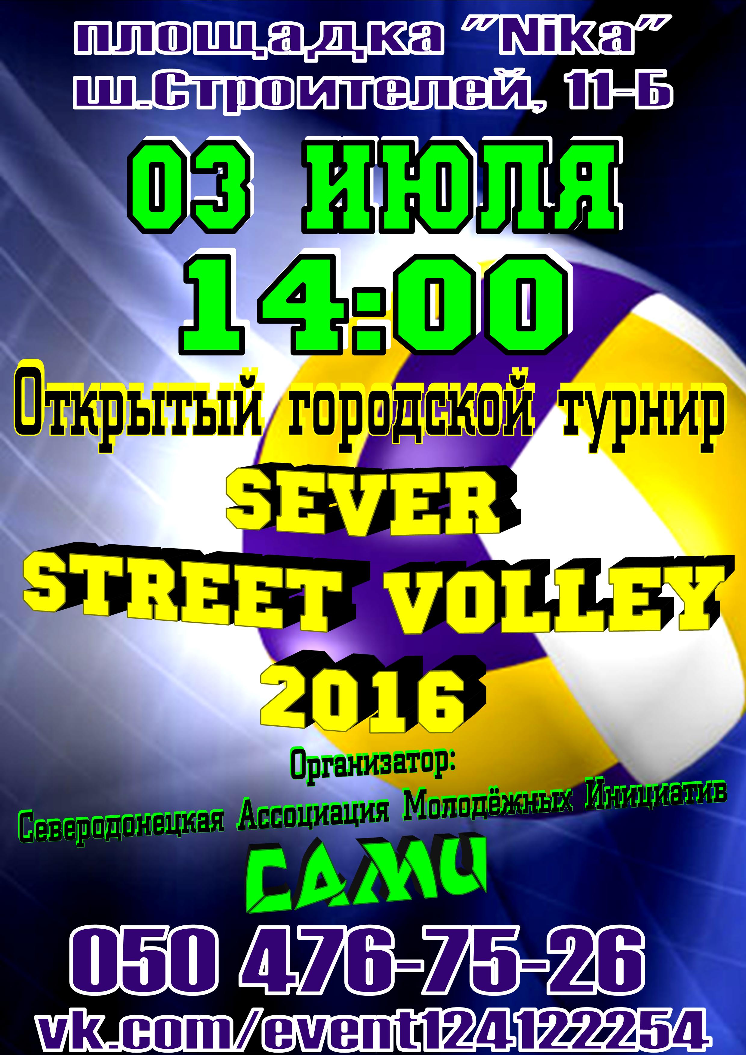 Впервые, в это воскресенье, 3 июля на площадке Nika (ш.Строителей, 11-Б) в 14:00 состоится 1-й Открытый городской турнир по Дворовому волейболу "Sever Street Volley - 2016"!