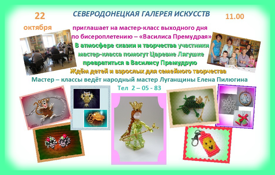 Сообщение: 22 октября в 11.00 Северодонецкая галерея искусств приглашает на мастер-класс по бисероплетению "Василиса Прекрасная". Мастер-класс проводит народный мастер Луганщины Елена Пилюгина.