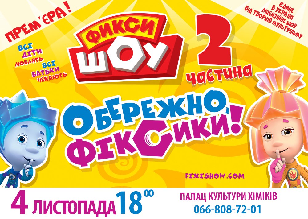 4 ноября в 18:00 в Северодонецке во Дворце Культуры Химиков самые рейтинговые мультяшные герои Фиксики приглашают всех окунуться в мир технических приключений!
