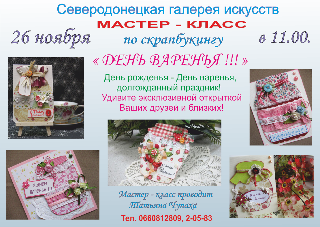 26 ноября в 11.00 в Галерее искусств - "День варенья!!!" - эксклюзивная открытка ко Дню рождения на мастер - классе по скрапбукингу Татьяны Чупахи