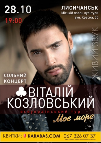 У рамках всеукраїнського туру «Моє море» із сольним концертом у Лисичанськ завітає Віталій Козловський.