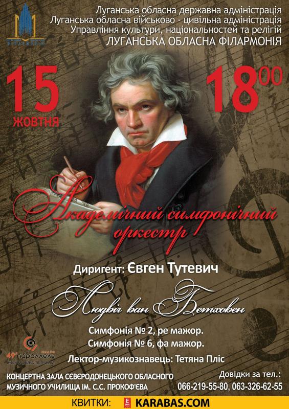 Луганська обласна філармонія запрошує на концерт Академічного симфонічного оркестру під керівництвом головного диригента Євгена Тутевича.