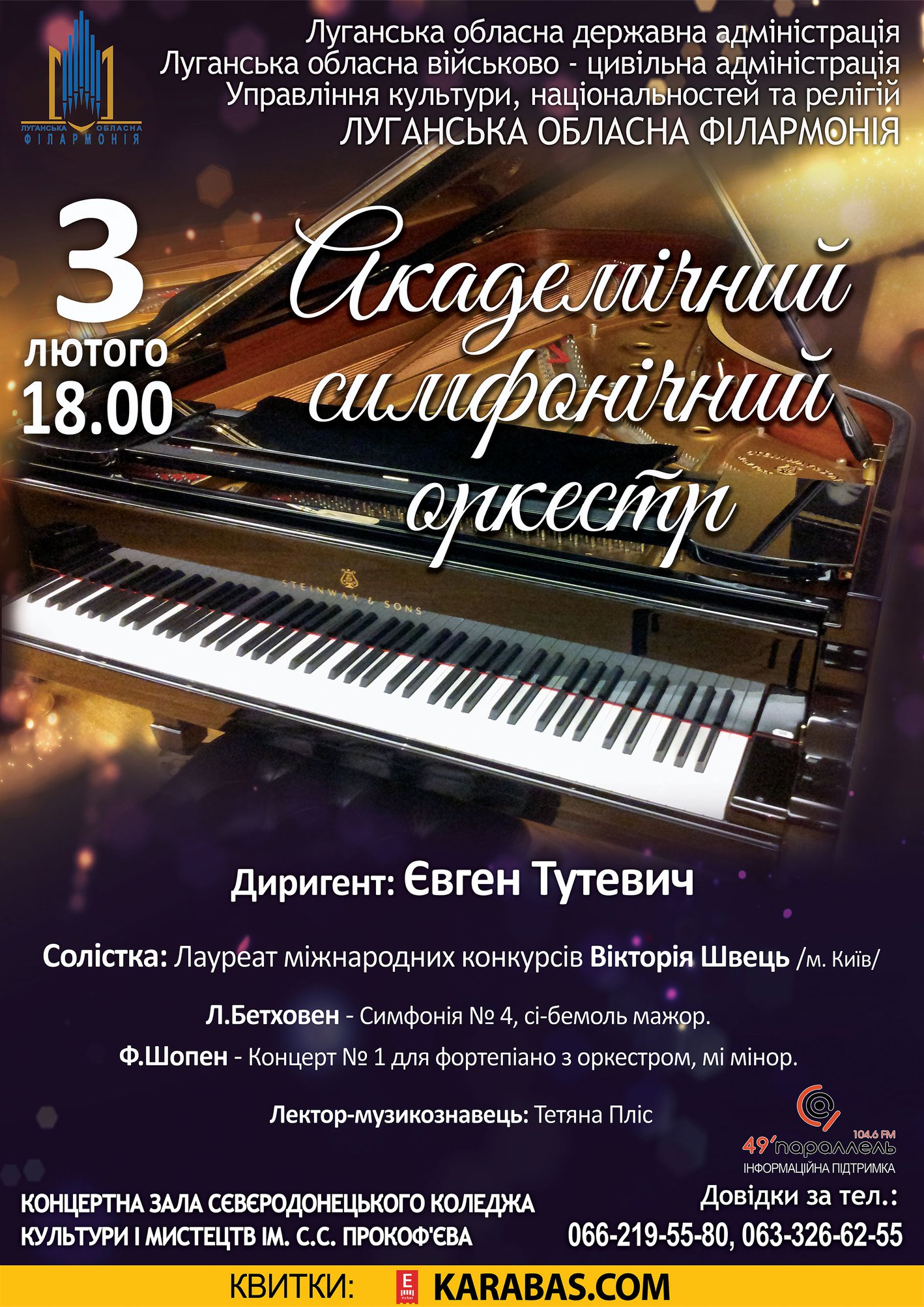 Академічний симфонічний оркестр Луганської обласної філармонії запрошує на концерт класичної музики під керівництвом головного диригента Євгена Тутевича!