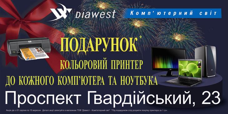Крупнейшая в Украине специализированная розничная сеть "DIAWEST - Комп'ютерний світ" предлагает в широком ассортименте компьютеры, ноутбуки, мониторы, периферию, аксессуары, картриджи и расходные материалы по 'антикризисным' ценам: