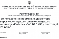 - 17:00 В.о. директора сіверськодонецької “Юності” погодили премію у майже 30 тис. грн
