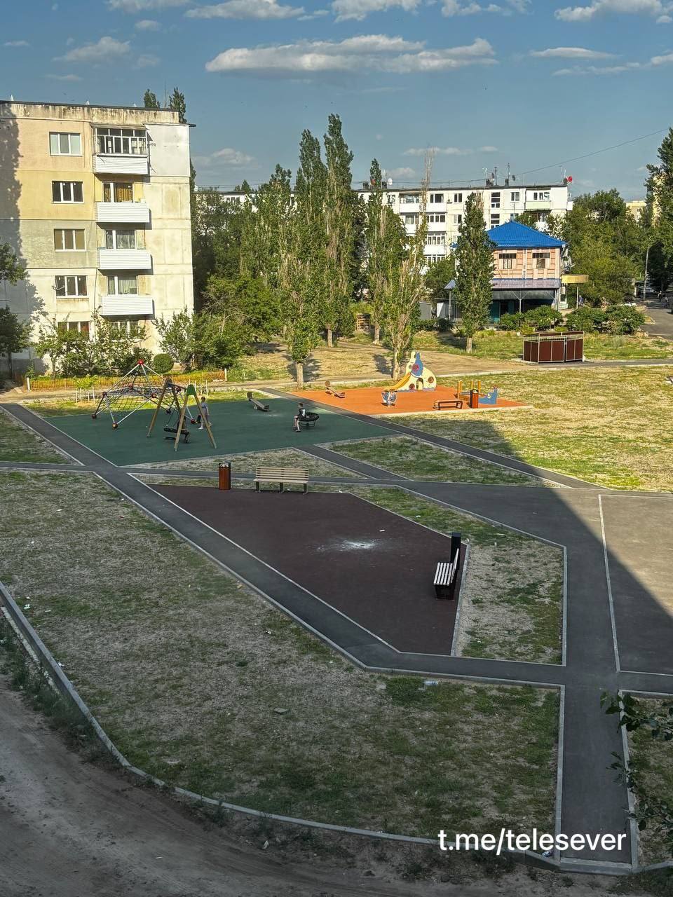 На проспекті Гвардійський, 55- А в окупованому Сіверськодонецьку окупанти зробили дитячий майданчик лише з двома гірками. Містяни пишуть, що раніше було краще.