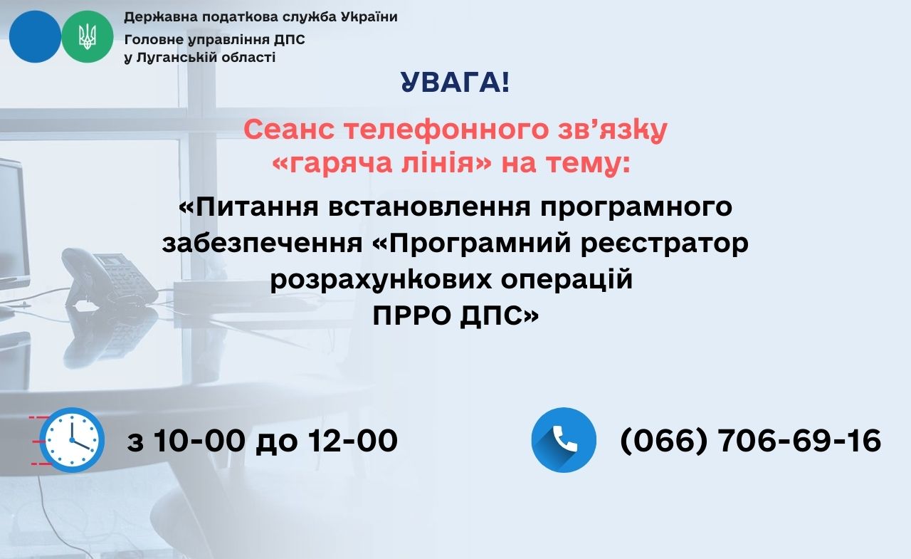 5 серпня 2025 року з 10-00 до 12-00 відбудеться сеанс телефонного зв’язку «гаряча лінія» на тему: «Питання встановлення програмного забезпечення «Програмний реєстратор розрахункових операцій ПРРО ДПС».