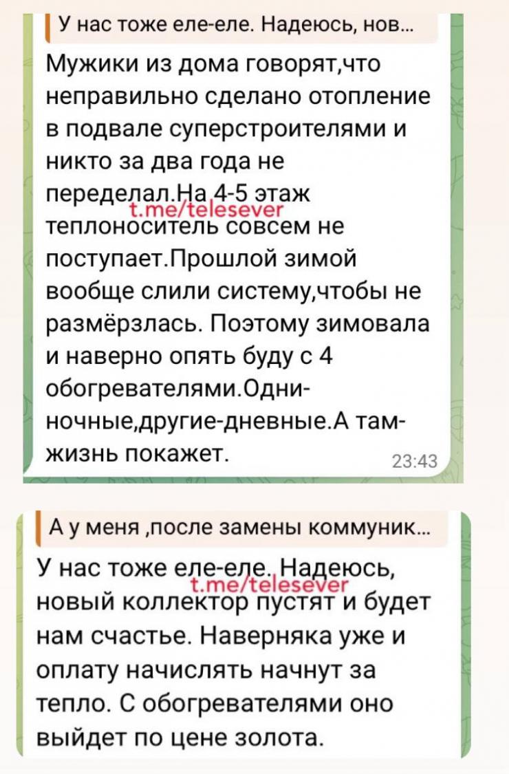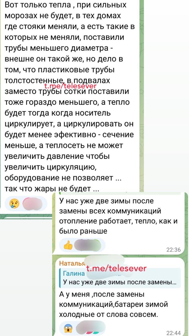 У мережі сіверськодончани скаржаться на сумнівну якість ремонтів, проведених окупантами. Зокрема, вони припускають, що при сильних морозах тепла не буде, бо при заміні комунікацій робітники встановили труби не того діаметру.