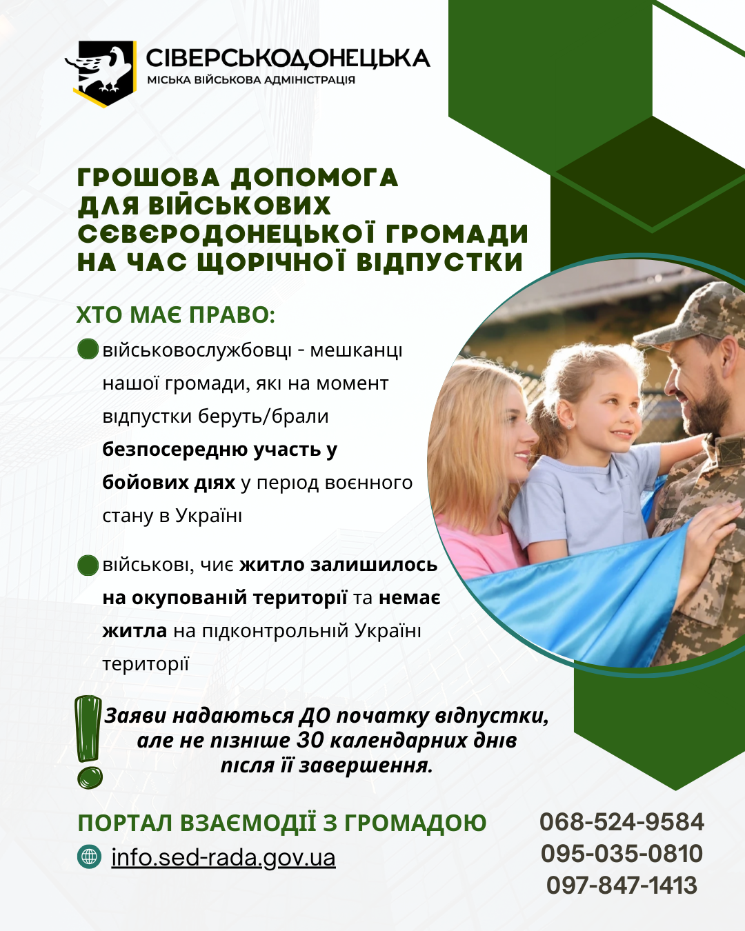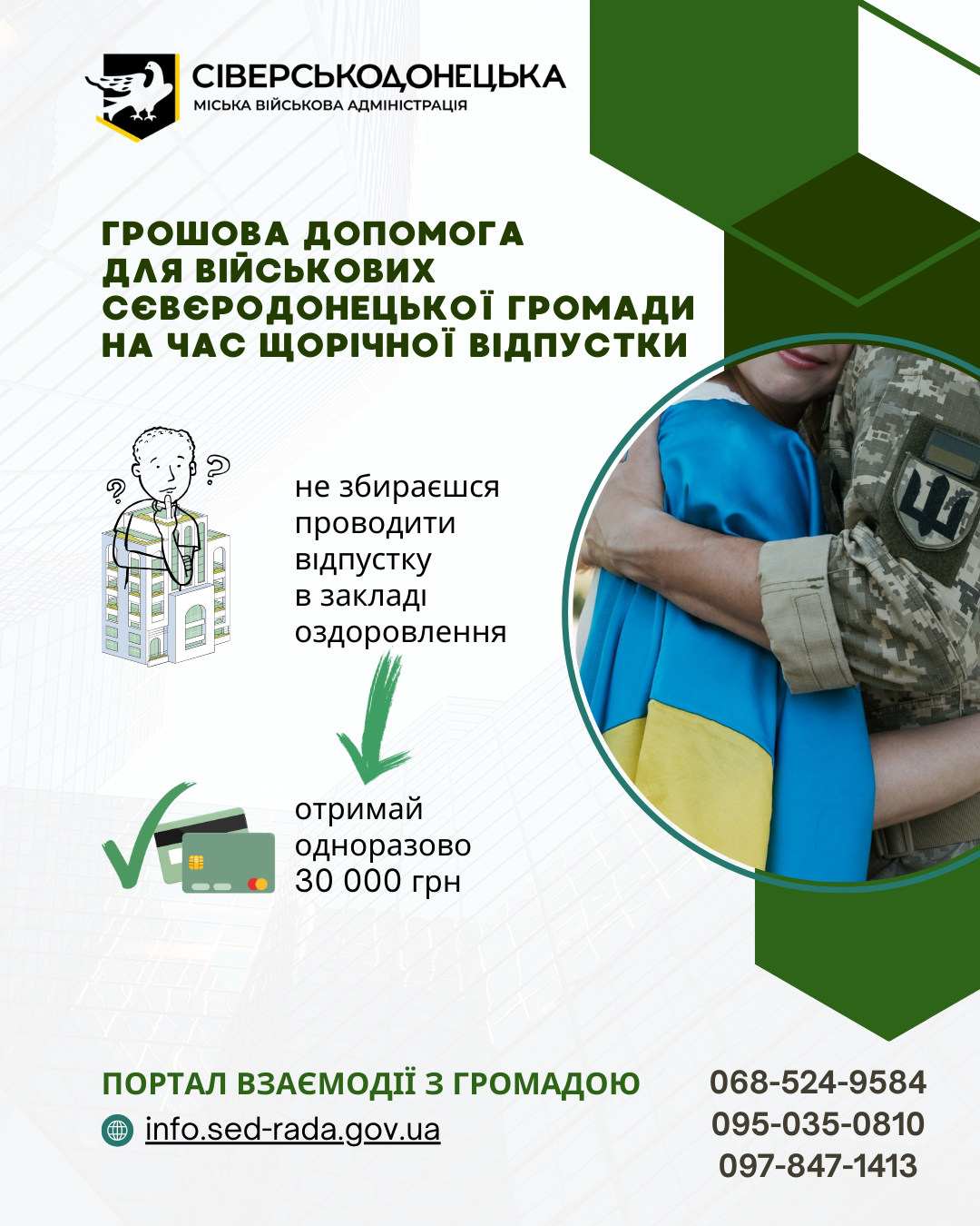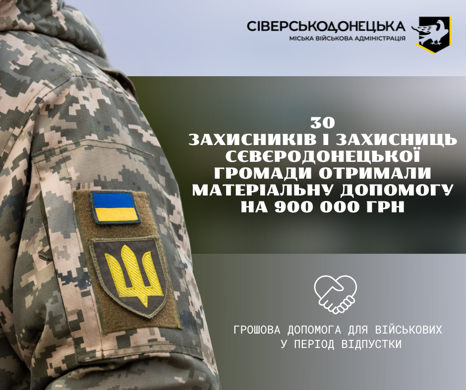 30 військовослужбовців Сєвєродонецької громади отримали одноразову грошову допомогу на період відпустки.