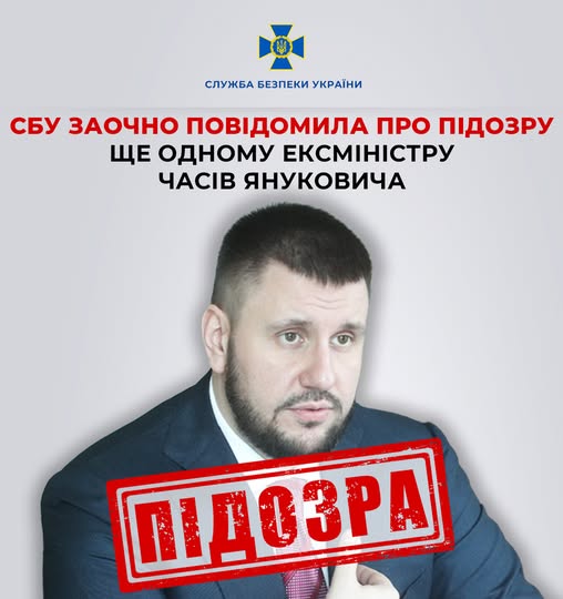 «Фігурант займав «крісло» в уряді часів Януковича та входив до близького оточення сім’ї президента-втікача. У лютому 2014 року ексміністр виїхав до рф, де співпрацює з окупантами та переховується від правосуддя», - зазначили у Службі безпеки.