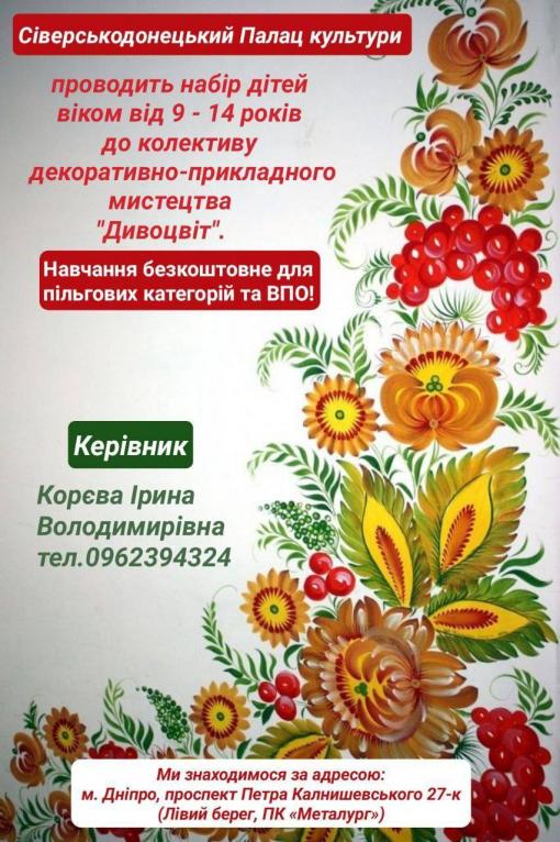 Міський Палац культури Сіверськодонецька у Дніпрі запрошує дорослих і дітей до своїх колективів.