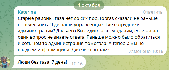 Також люди писали, що 30 вересня ремонтні бригади відпустили відпочивати.