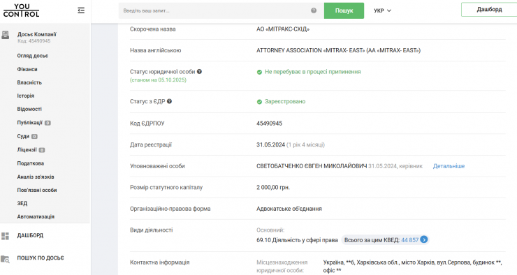 Згідно з документацією, ці послуги КП надаватиме адвокатське об’єднання «МІТРАКС-СХІД». Ми вже писали, що за даними YouControl, воно засноване у 2024 році у Харкові. У цього об’єднання «Сєвєродонецьктеплокомуненерго» замовляло й попередні послуги.