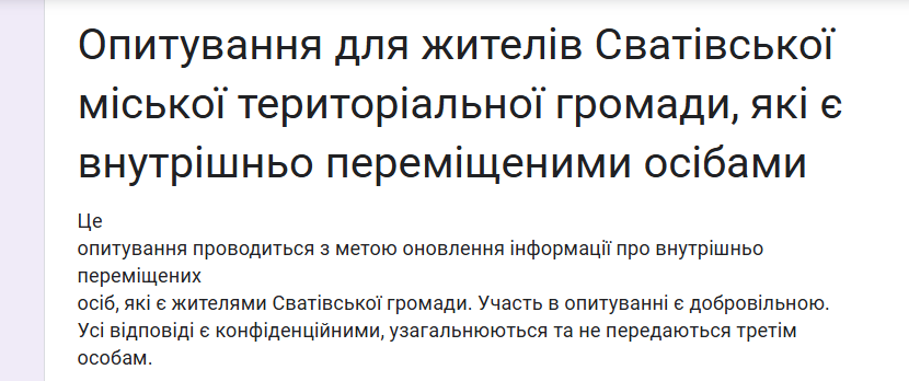 Жителів Сватівської громади просять пройти опитування щодо їхніх потреб