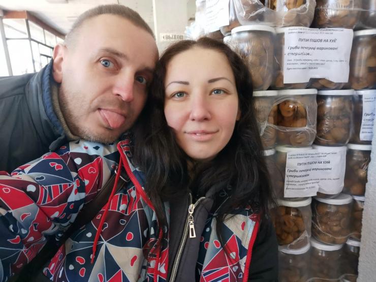 Ольга з Олексієм у Льодовому палаці на видачі гуманітарної допомоги