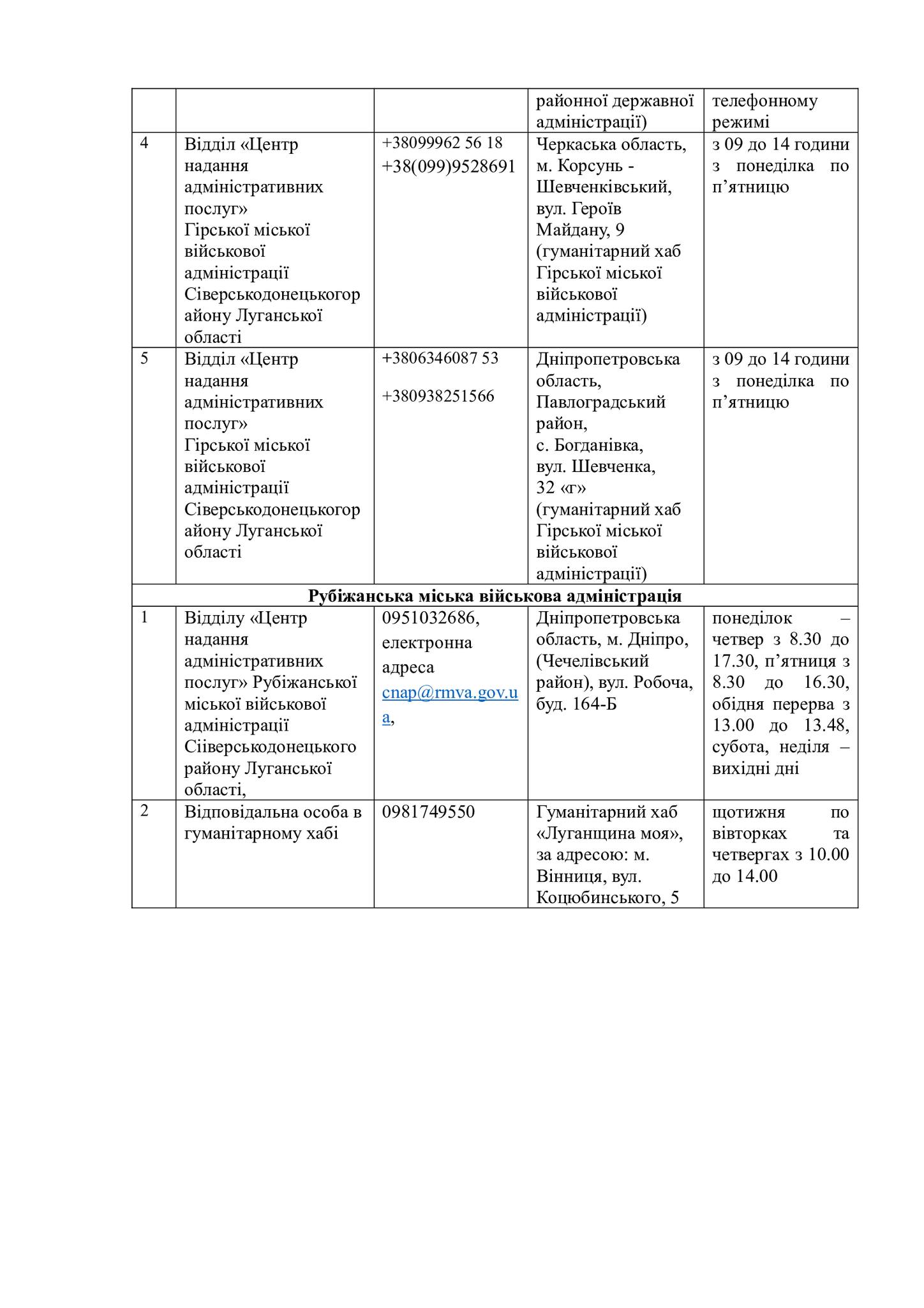 "Звертаємо увагу жителів Сіверськодонецького району, що вони можуть отримати консультативну допомогу стосовно внесення даних до Реєстру збитків - дистанційно або офлайн - від спеціалістів ЦНАПів міських військових адміністрацій району. Перелік і контакти дивіться в інфографіці", - зазначили в РДА.