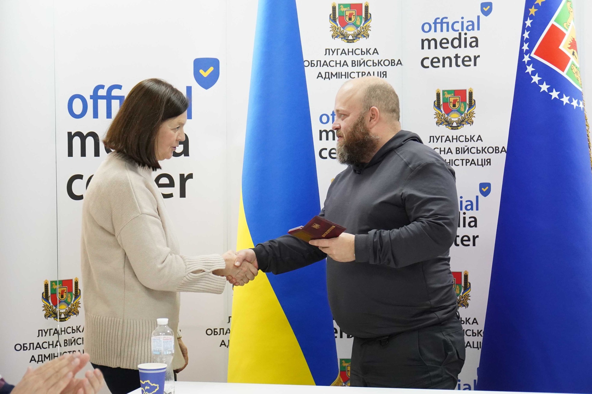 Харченко нагородив знаком «За сприяння відродженню Луганщини» менеджерку філії «Суспільне. Донбас» Ірину Коваль.