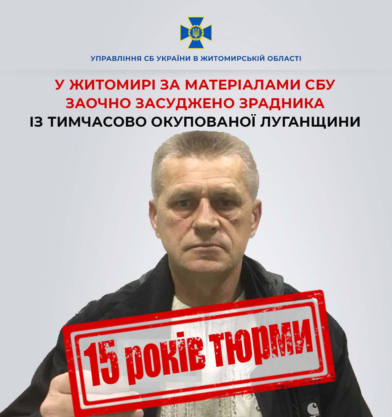 У Житомирі за матеріалами СБУ 15 років тюрми заочно отримав зрадник, який очолив автодорожнє підприємство в окупованій Станиці Луганській.