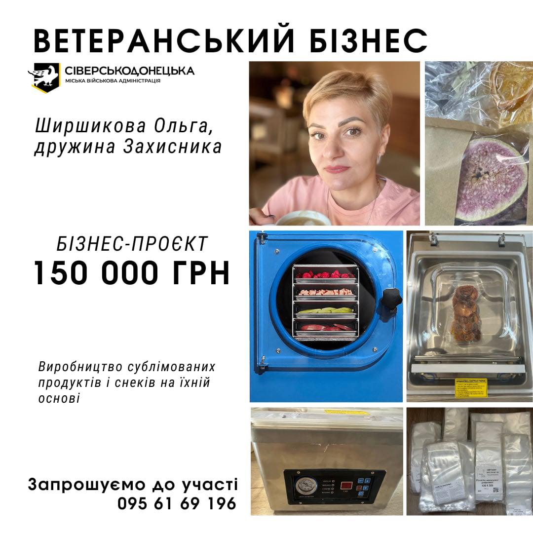 Ольга обрала напрям виробництва сублімованих продуктів та снеків на їхній основі. У травні вона подала проєктну заявку, успішно пройшла відбір, отримала фінансування та придбала необхідне обладнання для запуску виробництва.