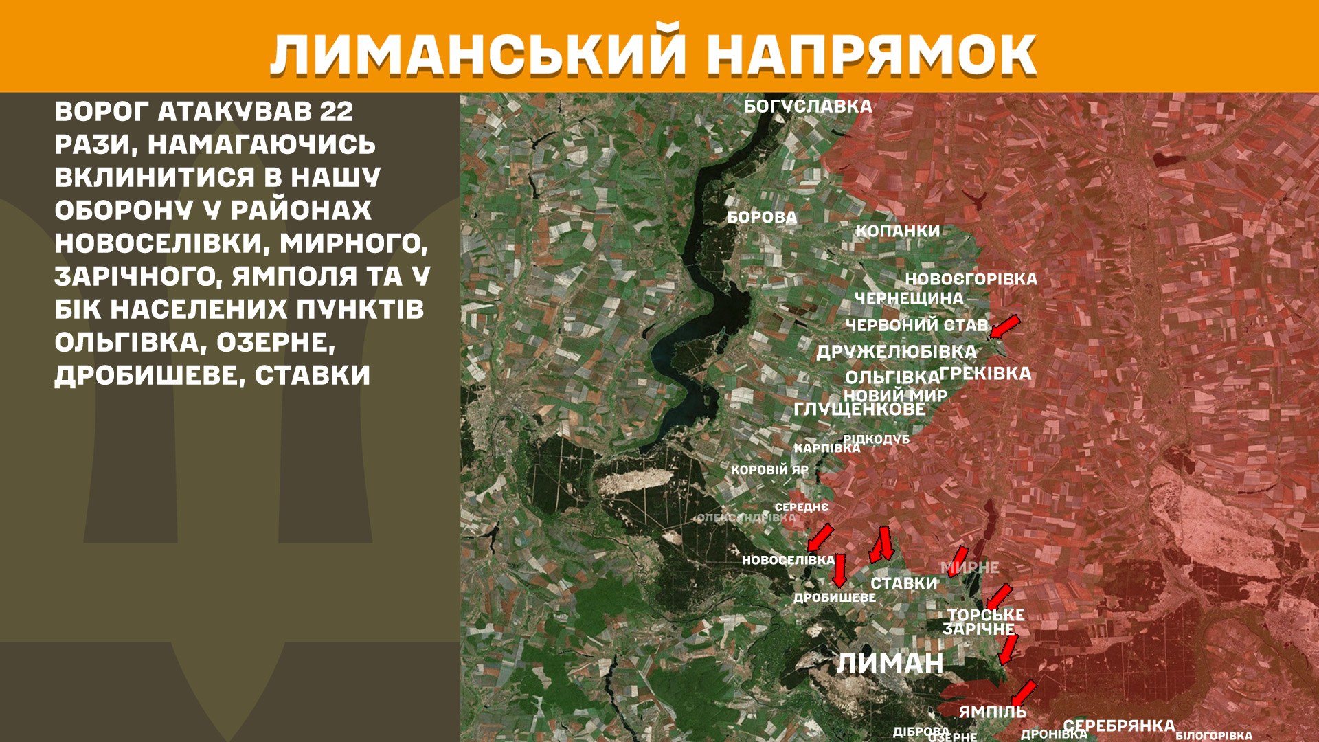На Лиманському напрямку минулої доби ворог атакував 22 рази.