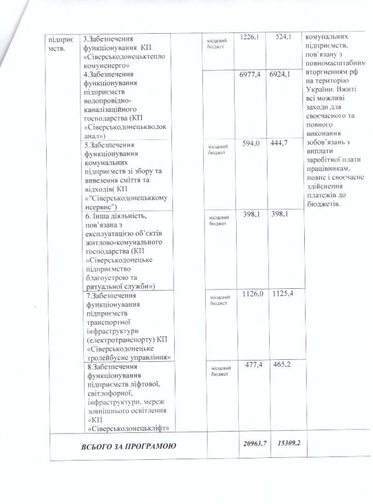 Згідно з документом, мова йде про 8 КП: “Житлосервіс “Світанок”, “Житлосервіс “Ритм”, “Сіверськодонецьктеплокомуненерго”, “Сіверськодонецькводоканал”, “Сіверськодонецьккомунсервіс”, “Сіверськодонецьке підприємство благоустрою та ритуальної служби”, “Сіверськодонецьке тролейбусне управління” та “Сіверськодонецькліфт”.