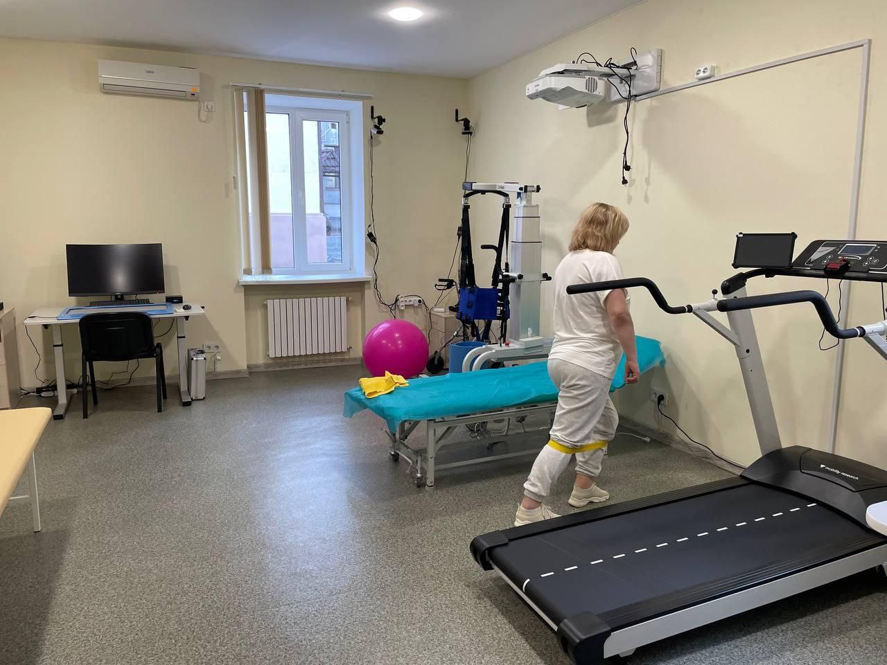 У залі медичної реабілітації використовуються степери Motion Stair 900, реабілітаційні доріжки GKS-22 (включно з модулем аналізу ходьби), ергометри Motion Cycle 900 med та контрольовані системи для тренування верхніх кінцівок і м’язів спини.