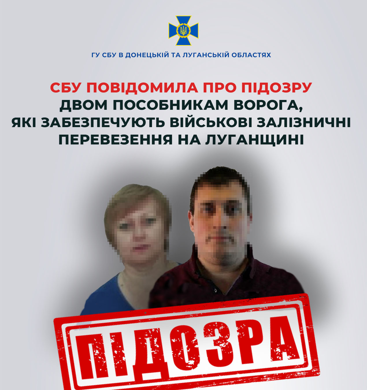 За матеріалами СБУ підозри за пособництво ворогу заочно отримали ще двоє колишніх працівників «Укрзалізниці» з Луганщини, які сприяють ворогу в організації військової залізничної логістики.