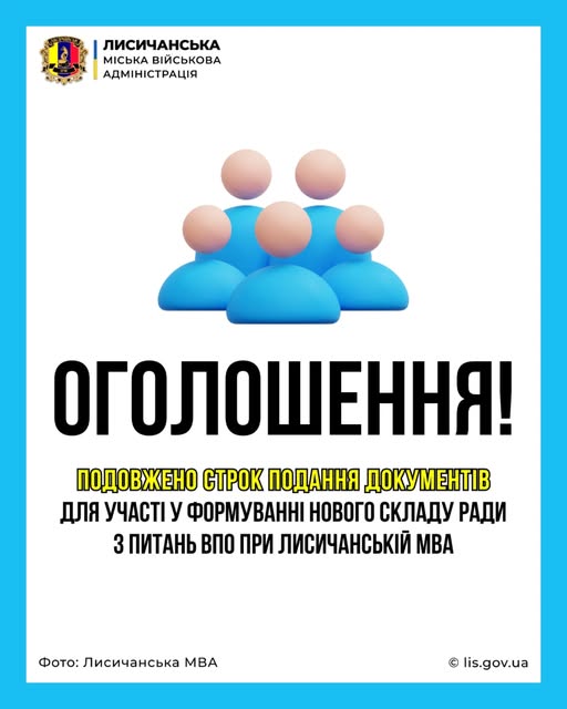 До 5 березня продовжили термін подання документів для участі у формуванні нового складу Ради з питань ВПО при Лисичанській МВА.