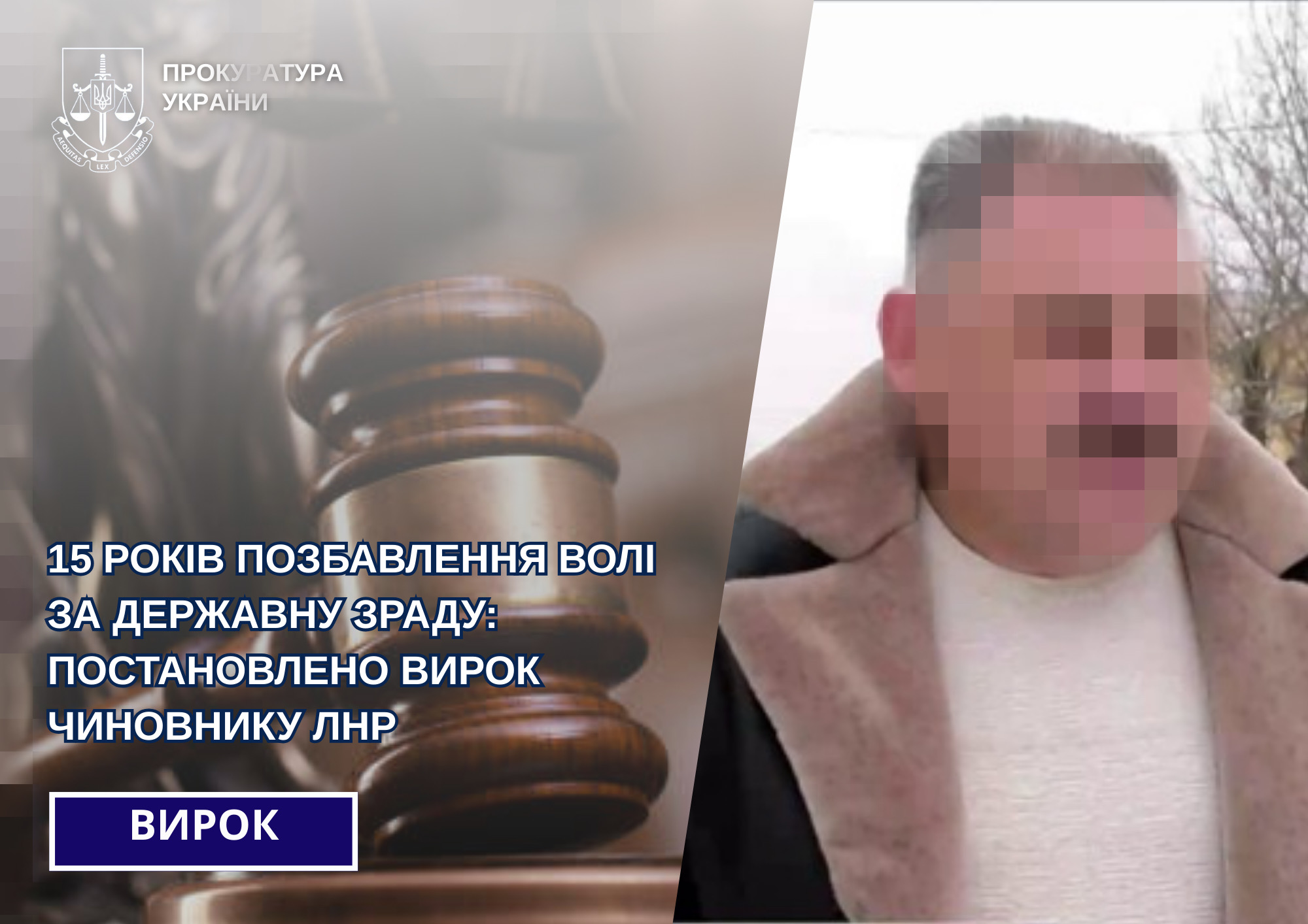 Ексчиновника з Луганщини засудили до 15 років тюрми за держзраду та колабораціонізм