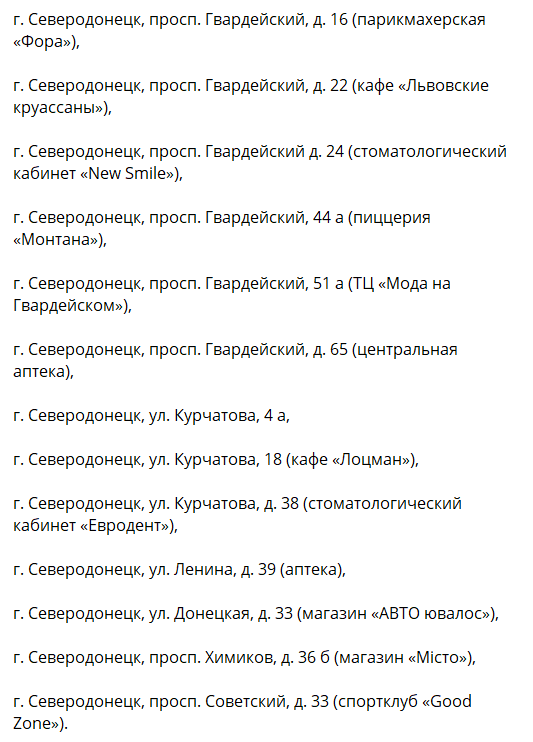 Повний список з адресами: