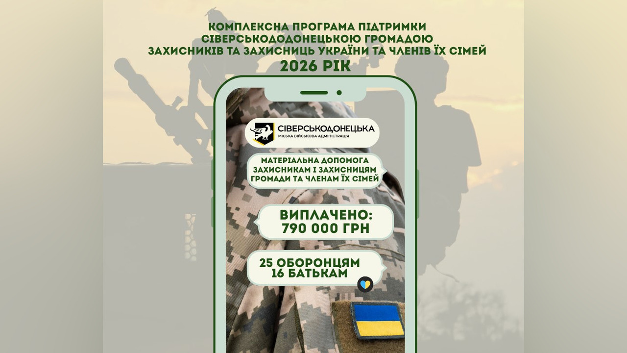Телефони для довідок щодо комплексної програми підтримки Сіверськодонецькою громадою військовослужбовців та членів їхніх родин: 097 847 14 13, 050 860 43 18.