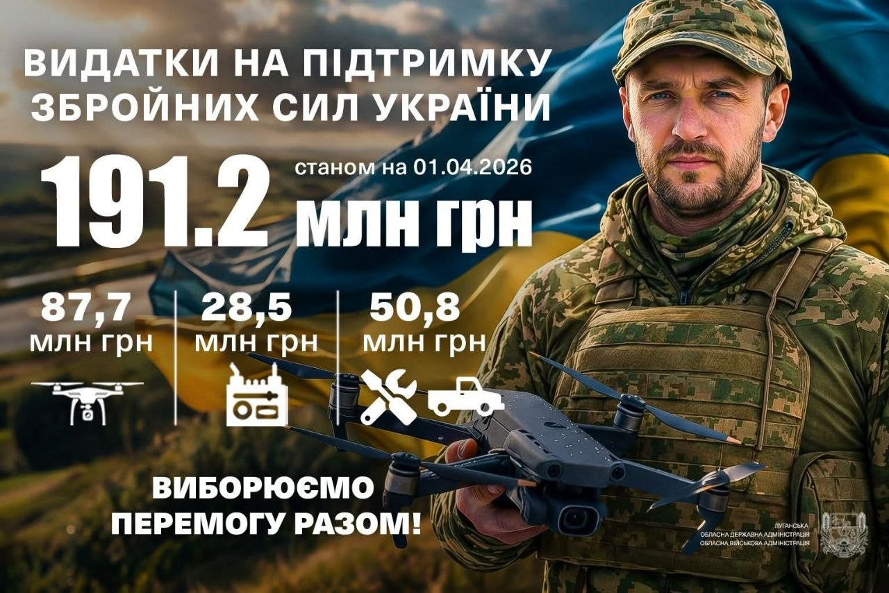 Станом на початок квітня 2026 року обсяг затверджених видатків обласного бюджету Луганщини на підтримку Сил оборони становить 191,2 млн гривень.