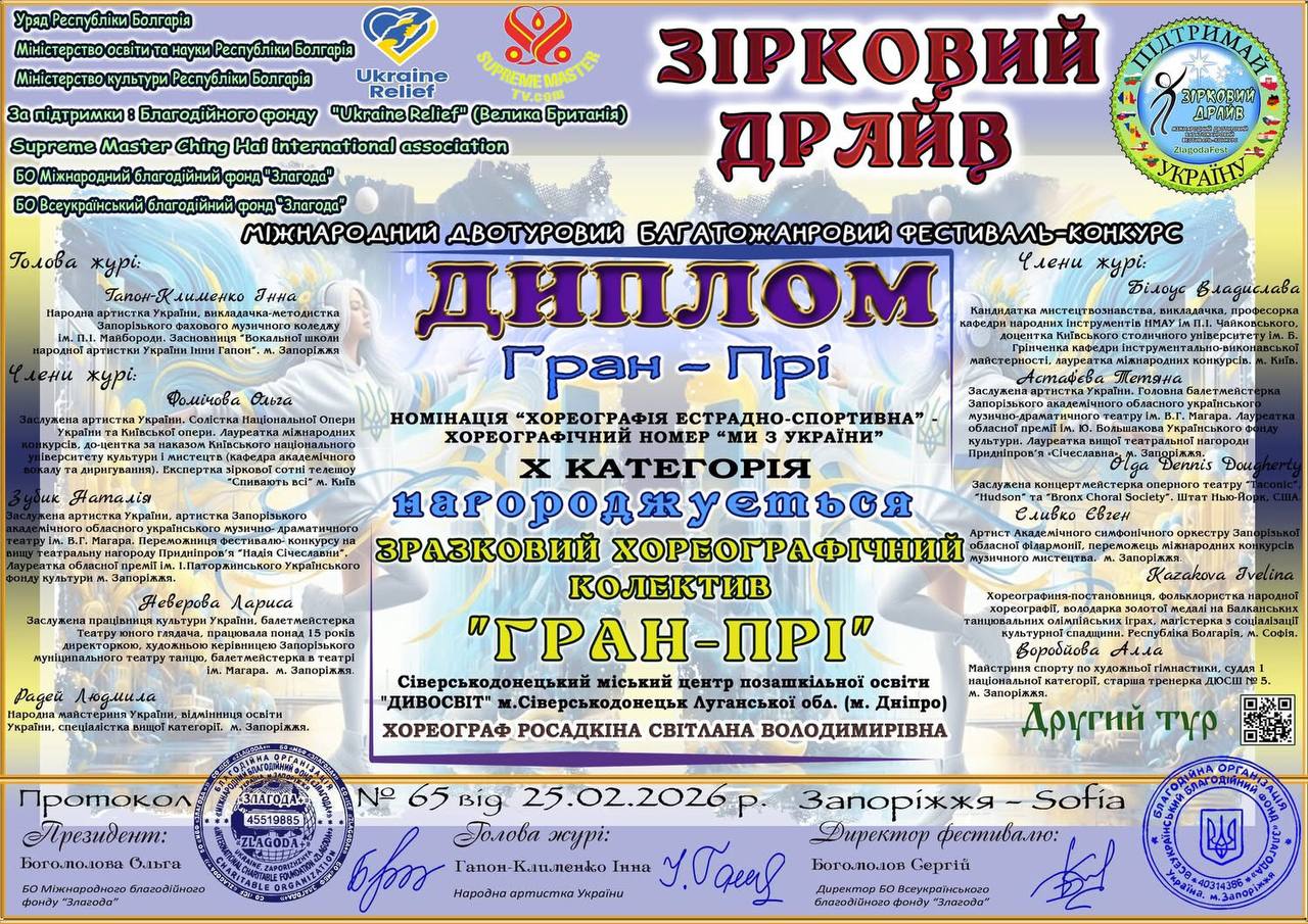 Вихованки художнього хореографічного колективу «Гран-Прі» Сіверськодонецького міського центру позашкільної освіти «Дивоствіт» перемогли на міжнародному двотуровому багатожанровому фестивалі-конкурсі «Зірковий Драйв».