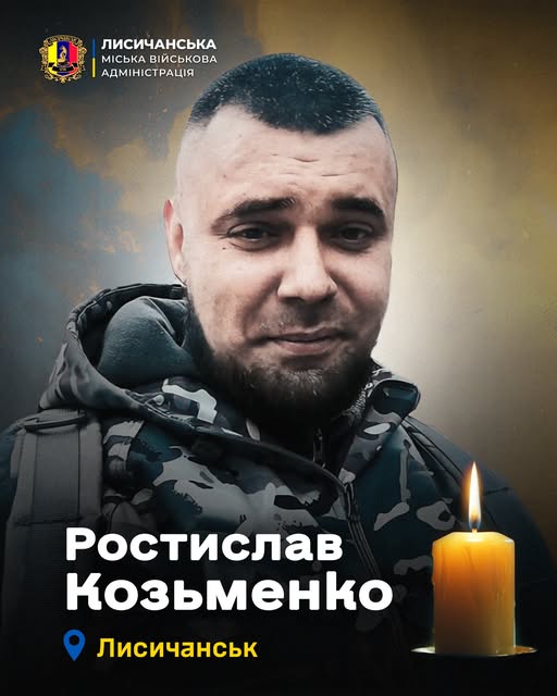 Старший лейтенант із Лисичанська Ростислав Козьменко загинув 8 квітня 2026 року внаслідок отриманих поранень під час виконання службових обов’язків.