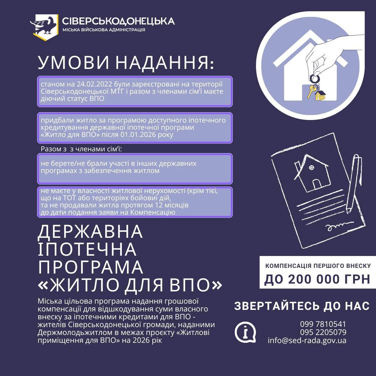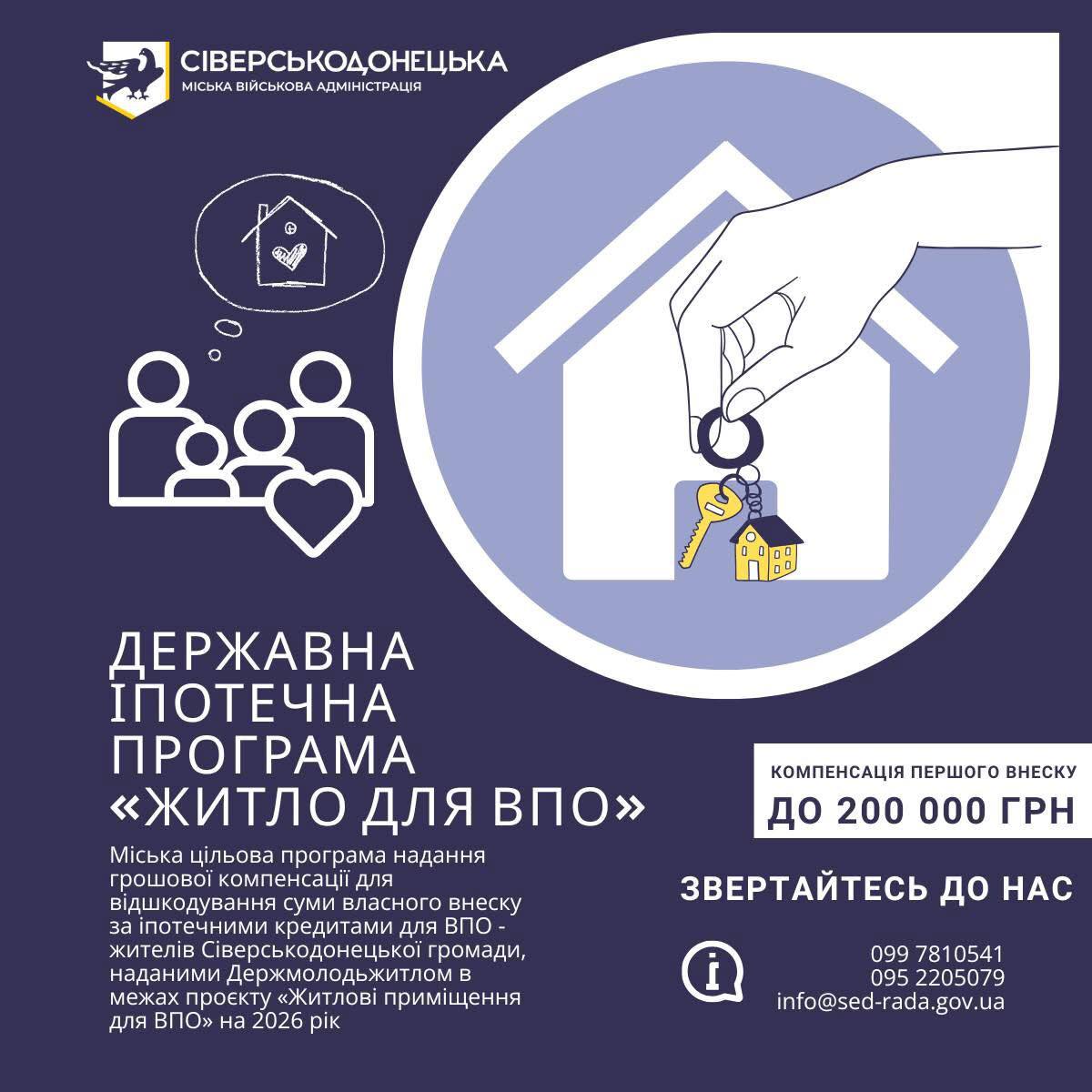 Раніше повідомлялося, що жителі Сіверськодонецької громади, які купують житло за іпотечною програмою Держмолодьжитло у співпраці з KfW/CEB (БРРЄ) «Житло для ВПО», можуть отримати з бюджету громади до 200 тисяч гривень компенсації за перший внесок.