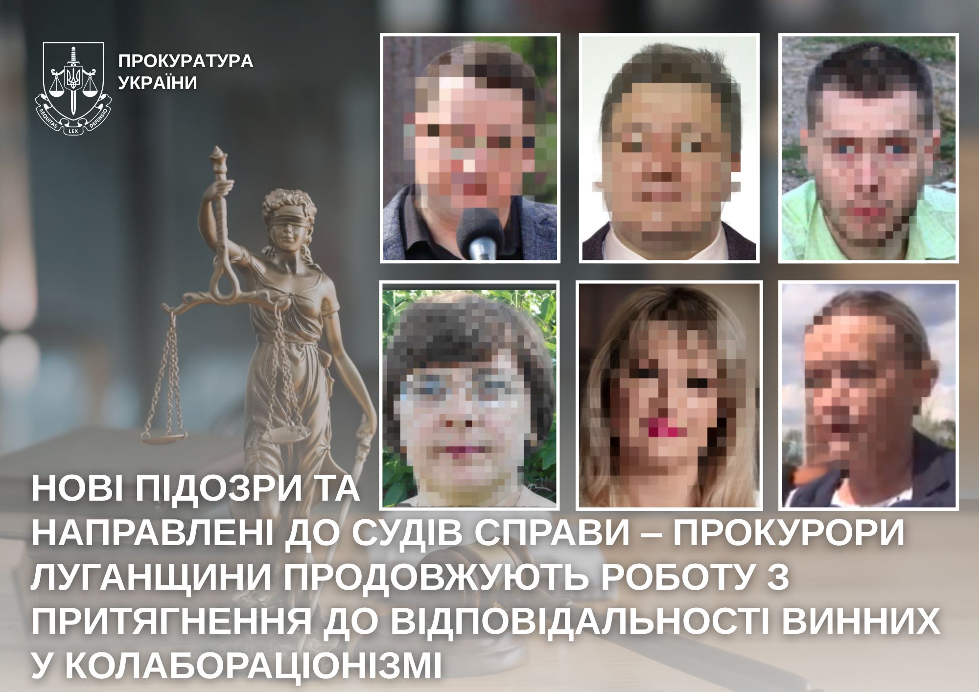 Прокурори Луганщини за тиждень повідомили про підозру восьми особам за фактами колабораційної діяльності та направили до суду три обвинувальні акти.