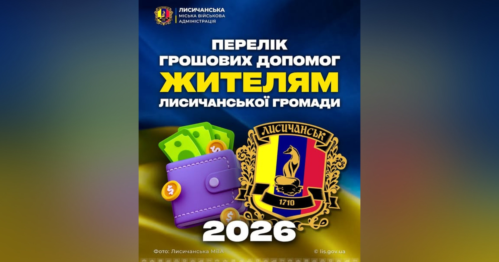 Детальніше про грошові допомоги жителям громади – на сайті Лисичанської МВА. Переліки документів містять інформацію щодо контактів для консультацій та способу подачі документів.