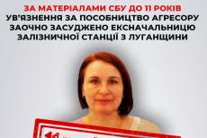 - 13:00 За пособництво росіянам до 11 років тюрми засудили ексначальницю залізничної станції з Луганщини