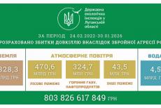 Станом на 30 листопада 2025 року загальна сума екологічних втрат, яких зазнало довкілля Луганської області через воєнні...