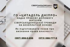 Безкоштовні юридичні консультації та правову допомогу щодо визнання права власності надають жителям Сіверськодонецької...